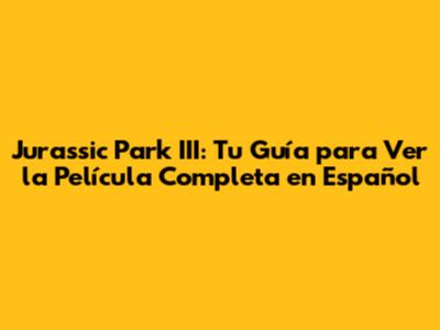 ¿Dónde Ver Jurassic Park III Completa en Español? Guía Paso a Paso