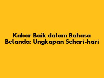 Kabar Baik Dalam Bahasa Belanda: Ungkapan Sehari-hari