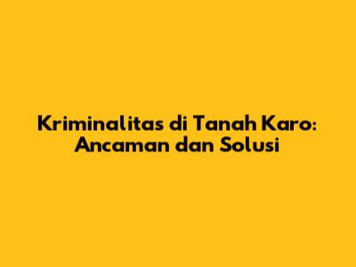 Kriminalitas Di Tanah Karo: Ancaman Dan Solusi