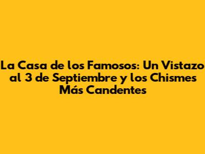 ¡Hola, fans de La Casa de los Famosos! ¿Listos para el chisme? Aquí les traigo un resumen explosivo de lo que pasó el 3 de septiembre. Prepárense porque hubo de todo: drama, risas, estrategias y, por supuesto, mucho, mucho salseo. Vamos a sumergirnos en los detalles, analizando las últimas noticias, las expulsiones y lo que nos depara esta temporada llena de emociones. ¡No se lo pierdan!