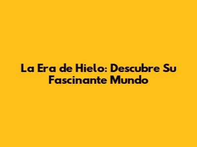 La Era De Hielo: Descubre Su Fascinante Mundo