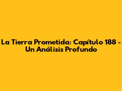 ¡Hola, fanáticos de La Tierra Prometida! 👋 Prepárense, porque vamos a sumergirnos en el capítulo 188, un episodio lleno de emociones, revelaciones y giros inesperados. En este análisis exhaustivo, desglosaremos cada detalle crucial, exploraremos los momentos más impactantes y echaremos un vistazo a lo que podríamos esperar en los próximos capítulos. Así que, pónganse cómodos, porque esto va a estar bueno. 🍿