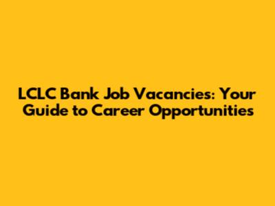 LCLC Bank Job Vacancies: Your Guide To Career Opportunities