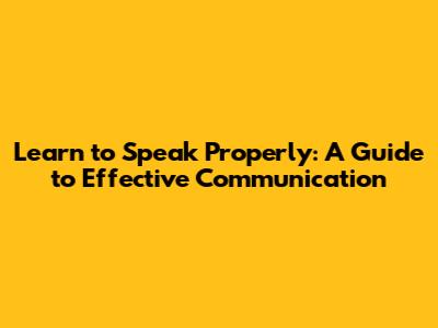 Learn To Speak Properly: A Guide To Effective Communication