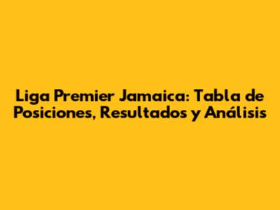 Liga Premier Jamaica: Tabla De Posiciones, Resultados Y Análisis