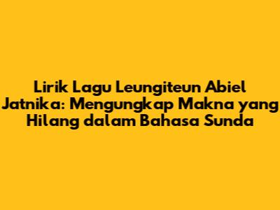Semoga artikel ini bermanfaat dan dapat menambah wawasan Anda tentang lirik lagu Leungiteun Abiel Jatnika. Selamat menikmati lagu ini dan semoga Anda selalu menemukan kedamaian dalam hidup.
