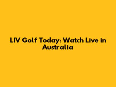 LIV Golf Today: Watch Live In Australia