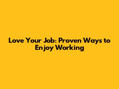 Love Your Job: Proven Ways To Enjoy Working