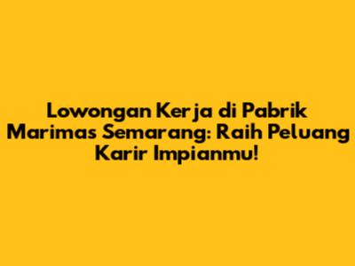 Lowongan Kerja Di Pabrik Marimas Semarang: Peluang Emas & Tips Sukses
