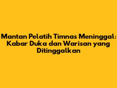 Kabar duka menyelimuti dunia sepak bola Indonesia. Salah satu mantan pelatih timnas yang sangat berpengaruh telah berpulang. Kepergian sosok ini meninggalkan kesedihan mendalam bagi keluarga, sahabat, dan seluruh penggemar sepak bola di tanah air. Artikel ini akan mengulas perjalanan karier sang pelatih, kontribusi yang telah diberikan untuk timnas, serta warisan yang akan terus dikenang.