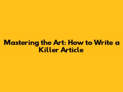 Mastering The Art: How To Write A Killer Article