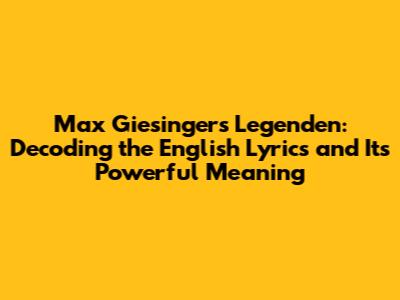 Max Giesinger Legenden: English Lyrics & Meaning Explained