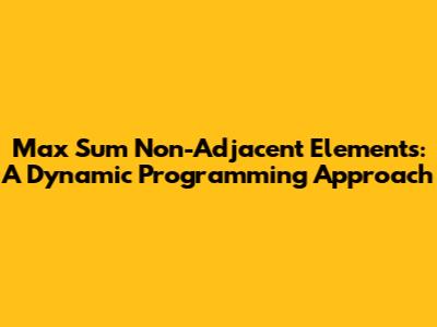 Max Sum Non-Adjacent Elements: A Dynamic Programming Approach