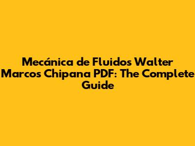 Mecánica De Fluidos Walter Marcos Chipana PDF: The Complete Guide