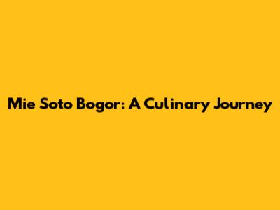 Mie Soto Bogor: A Culinary Journey
