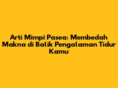 Guys, pernah nggak sih kalian bangun tidur dengan perasaan campur aduk gara-gara mimpiin sesuatu yang aneh? Nah, salah satunya mungkin mimpi pasea. Apa sih arti mimpi pasea ini sebenarnya? Apakah ini pertanda baik, buruk, atau cuma bunga tidur belaka? Tenang, kita bakal kupas tuntas di sini!