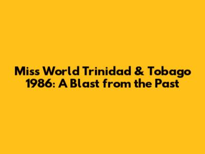 Miss World Trinidad & Tobago 1986: A Look Back