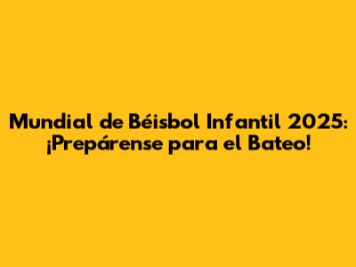 Mundial De Béisbol Infantil 2025: Calendario Y Todo Lo Que Necesitas Saber