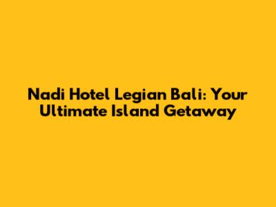 Nadi Hotel Legian Bali: Your Ultimate Island Getaway