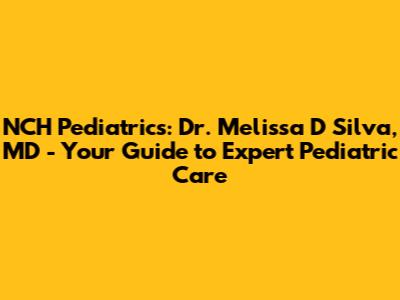 Hey guys! Let's dive into everything you need to know about NCH (North Collier Hospital) Pediatrics and the amazing Dr. Melissa D Silva, MD. If you're on the hunt for top-notch pediatric care, you've come to the right place. We'll cover her expertise, the services offered at NCH Pediatrics, and why choosing the right pediatrician is super important for your little one’s health and well-being. So, grab a comfy seat and let’s get started!