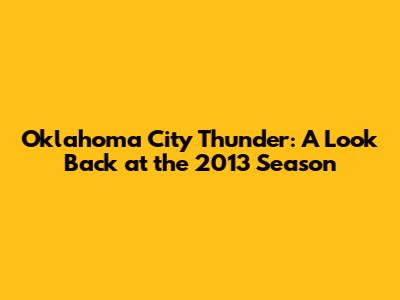 Oklahoma City Thunder: 2013 Roster, Season Recap & Player Stats