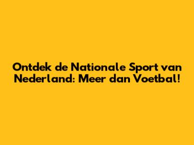 Ontdek De Nationale Sport Van Nederland: Meer Dan Voetbal!