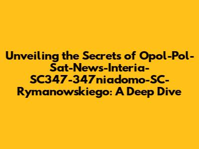 The Impact and Significance of Opol-Pol-Sat-News-Interia-SC347-347niadomo-SC-Rymanowskiego: Why Should We Care?