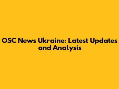 OSC News Ukraine: Latest Updates And Analysis