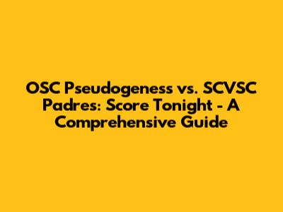 OSC Pseudogeness Vs. SCVSC Padres: Score, Analysis & Predictions