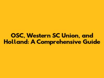 OSC, Western SC Union, And Holland: A Comprehensive Guide