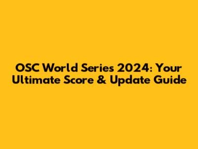 OSC World Series 2024 Scores & Updates: What You Need To Know