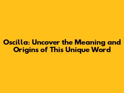 Oscilla: Uncover The Meaning And Origins Of This Unique Word
