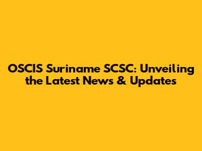 OSCIS Suriname SCSC: Latest News & Updates