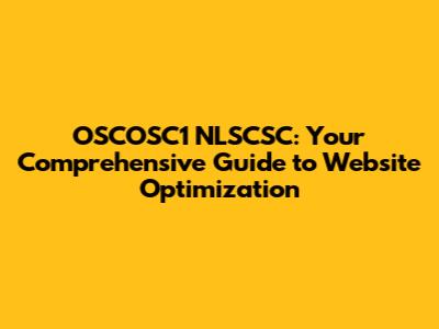 OSCOSC1 NLSCSC: Ultimate Guide To Website Optimization