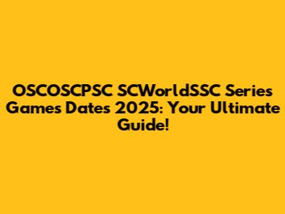 OSCOSCPSC SCWorldSSC Games: 2025 Dates & Updates!