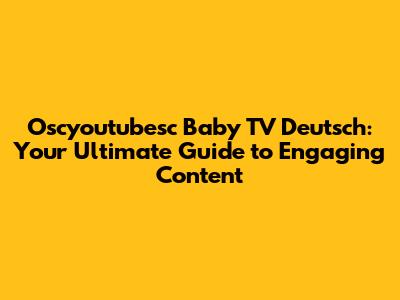 Oscyoutubesc Baby TV Deutsch: Your Ultimate Guide
