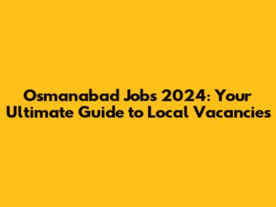 Osmanabad Jobs 2024: Your Ultimate Guide To Local Vacancies