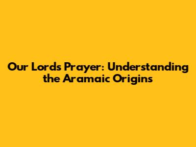 Our Lord's Prayer: Understanding The Aramaic Origins