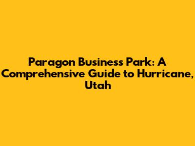 Hey guys! Welcome to a deep dive into Paragon Business Park in Hurricane, Utah! If you're looking for a spot to set up shop, expand your business, or just curious about what this area has to offer, you're in the right place. We're going to explore everything from its prime location and available spaces to the local amenities and the vibrant community that makes Hurricane such a fantastic place to do business. Ready to get started?