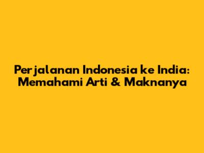 Perjalanan Indonesia Ke India: Memahami Arti & Maknanya