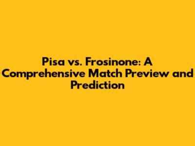 Pisa Vs. Frosinone: Match Preview & Prediction