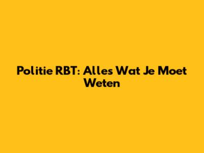Politie RBT: Alles Wat Je Moet Weten