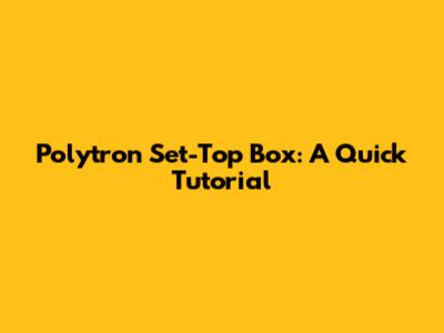 Polytron Set-Top Box: A Quick Tutorial