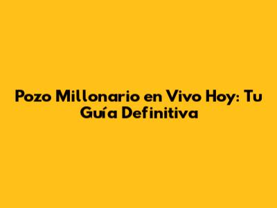 Pozo Millonario En Vivo Hoy: Guía Completa Y Consejos
