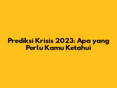 Prediksi Krisis 2023: Apa Yang Perlu Kamu Ketahui