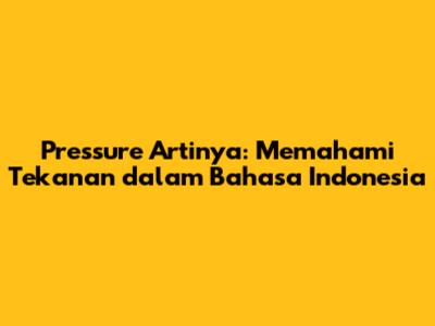 Pressure: Artinya, Pengertian, Dan Penggunaannya Dalam Bahasa Indonesia
