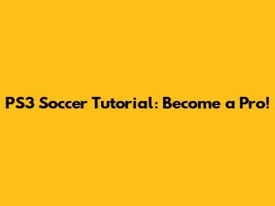 PS3 Soccer Tutorial: Become A Pro!