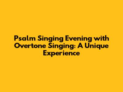 Have you ever experienced a psalm singing evening with overtone singing? Guys, it's something truly special! It's a blend of traditional psalm singing with the ethereal, almost otherworldly sound of overtone singing. If you're looking for a unique and deeply moving musical experience, then a psalm singing evening with overtone singing might be just the thing for you. It's not your everyday concert; it's an immersive journey into sound and spirit. The combination creates a meditative and uplifting atmosphere, perfect for reflection and connection. The psalm singing evening with overtone singing brings a new dimension to both the traditional psalms and the fascinating art of overtone singing, creating an unforgettable experience for everyone involved. Imagine the rich harmonies of the psalms interwoven with the clear, bell-like tones of overtone singing – it’s a truly captivating soundscape.