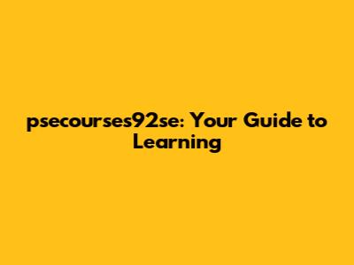Psecourses92se: Your Guide To Learning