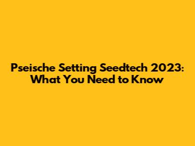 Pseische Setting Seedtech 2023: What You Need To Know